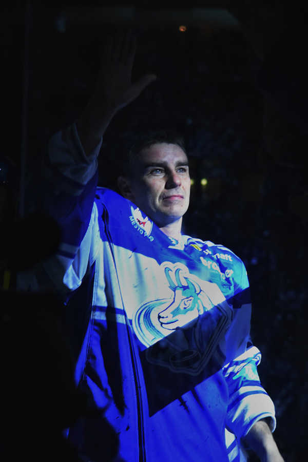 Šéf spoločnosti Prohokej Richard Lintner, prezident SR Andrej Kiska a primátor Popradu Jozef Švagerko sa ukázali publikum pred zápasom popradských hokejistov aby na červenom koberci za salvy ohňostrojov ocenili kapitána hokejového klubu HC Poprad.