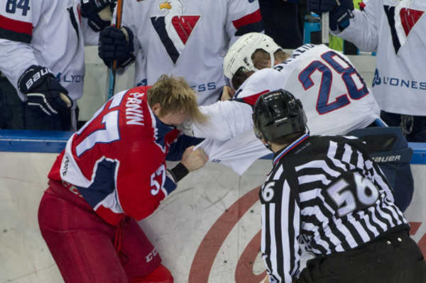 Rozhodovali: Bondar, Sidorenko - Kučava, Novikov, vylúčení: 4:5 na 2 min., navyše Panin - Skalický 5+DKZ za údery, presilovky: 0:1, oslabenia: 0:0, 5073 divákov