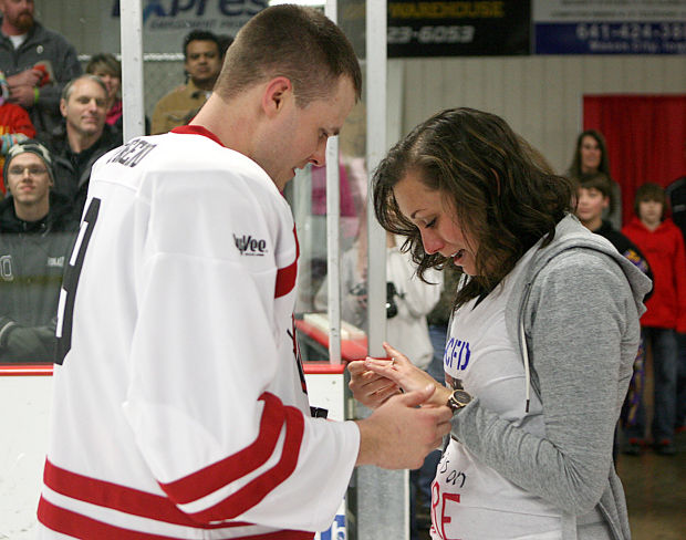 Justin požiadal o ruku svoju priateľku počas prestávky zápasu svojho tímu v ECHL (profesionálna hokejová liga v USA).